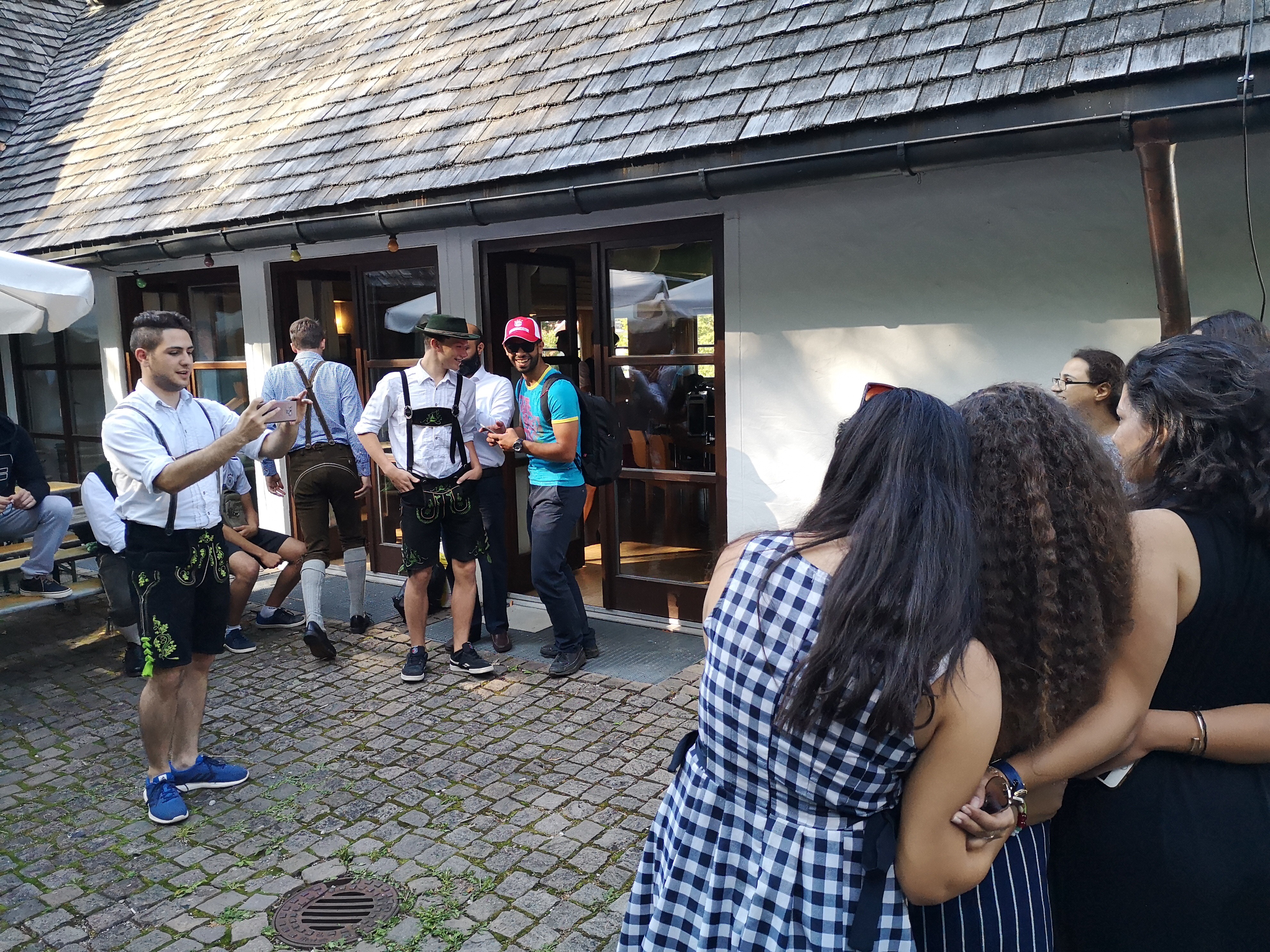 Oh, hey there, person reading this, it‘s us again! We‘re back again from our family stay and we‘re ready to share everything with you! So we went to church with our host families on Sunday morning to attend the service. After lunch we all came to Bad Tölz the capital of the deanery to meet the deacon and other people from the church and the Lutheran youth to introduce our group and the youth meeting to them and also the parents. We also shared the experiences in the families while having coffee and cake. Many of the Germans wore traditional clothing for the meeting, „Dirndl“ for the girls and „Lederhosn“ from the men. We took many pictures that day.